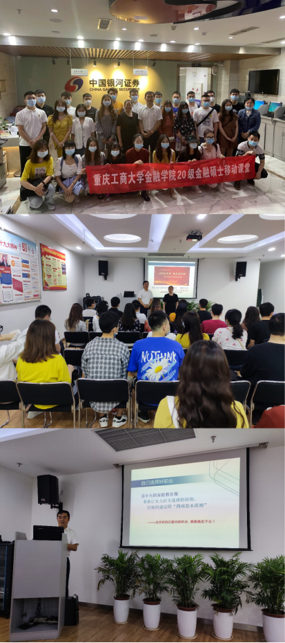 唐贺文先生在金融机构从业金融类工作20多年,有着很多年金融领域从业经验,现担任重庆银河证券江南大道主要负责人,负责管理分公司的整体运营,发展业务,实现销售目标;激励和领导支行团队完成各项业务任务。唐总先介绍了金融机构的整体框架,讲了自己从业这么多年以来对金融领域的看法,然后细分到证券机构的具体业务的风险管理,给研究生员工讲到了很多具有代表性的案例,唐总用具体的事实案例来教导员工们从业所要注意的问题,证券具体业务的风险管理,用实践的方式让员工们更加生动的了解到证券业务知识。关于证券的经营管理,唐总提出了要坚持金融行业从业人员的初心,坚守底线,并用具体的案例警醒以后即将从事金融行业的研究生同学,仔讲到关于以后同学们的职业规划方面时,唐总诙谐的语言让同学们在欢快的气氛中又学到了实践的知识,在对客户方面,唐总提出要有精准的客户定位、良好的渠道获取、真正的客户诉求、真实的客户口碑、真诚的客情关系,对客户的营销讲究恰当的策略、时机、需求的挖掘与创造、攻心营销以及异议处理。