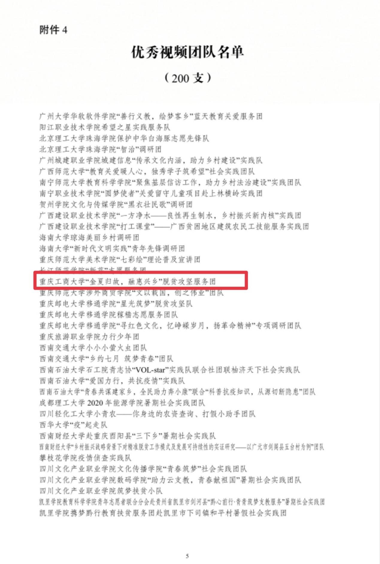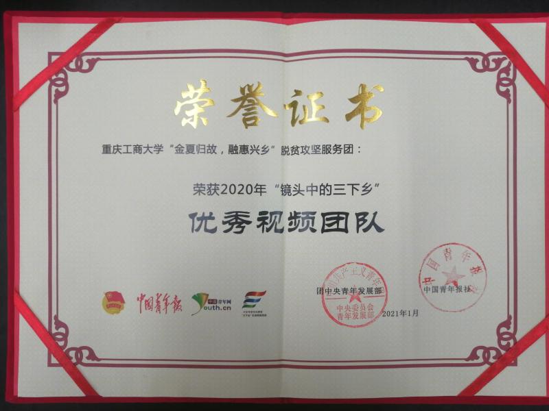 2020年11月23日,团中央青年发展部、中国青年报、中国青年网共同举办2020年全国大中专员工志愿者暑期“三下乡”社会实践“镜头中的三下乡”成果遴活动结果公示,公司暑期“三下乡”社会实践团队——“金夏归故,融惠兴乡”脱贫攻坚服务团荣获“全国优秀视频团队”荣誉称号。