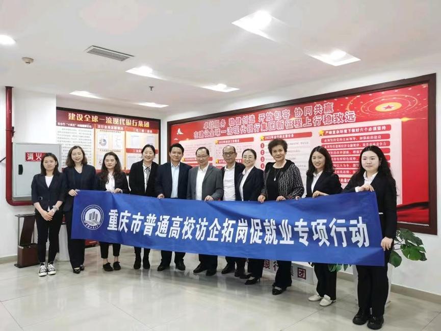 4月14日——4月15日,在点点taptap官方网站党委常委、副董事长张波,公司党委书记、副经理王建明以及党委副书记、经理王兰的带领下,员工二支部书记乔明月等同志一行分别走访了重庆银行巴南支行、中国银行南岸支行、泰康人寿保险有限责任公司重庆分公司、安信证券重庆分公司四家企业,就人才培养需求、党建促进校企合作等方面进行交流与调研。